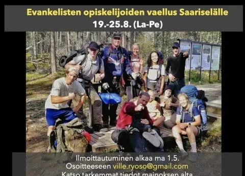 *Tuntureita, metsäerämaata, jokia, Jumalan luomistyön ihmettelyä, luontoa, hiljaisuutta ja yhdessäoloa laatuporukalla Sanan äärellä. Tätä on EO:n vaellus. Tule mukaan Evankelisten opiskelijoiden vaellukselle