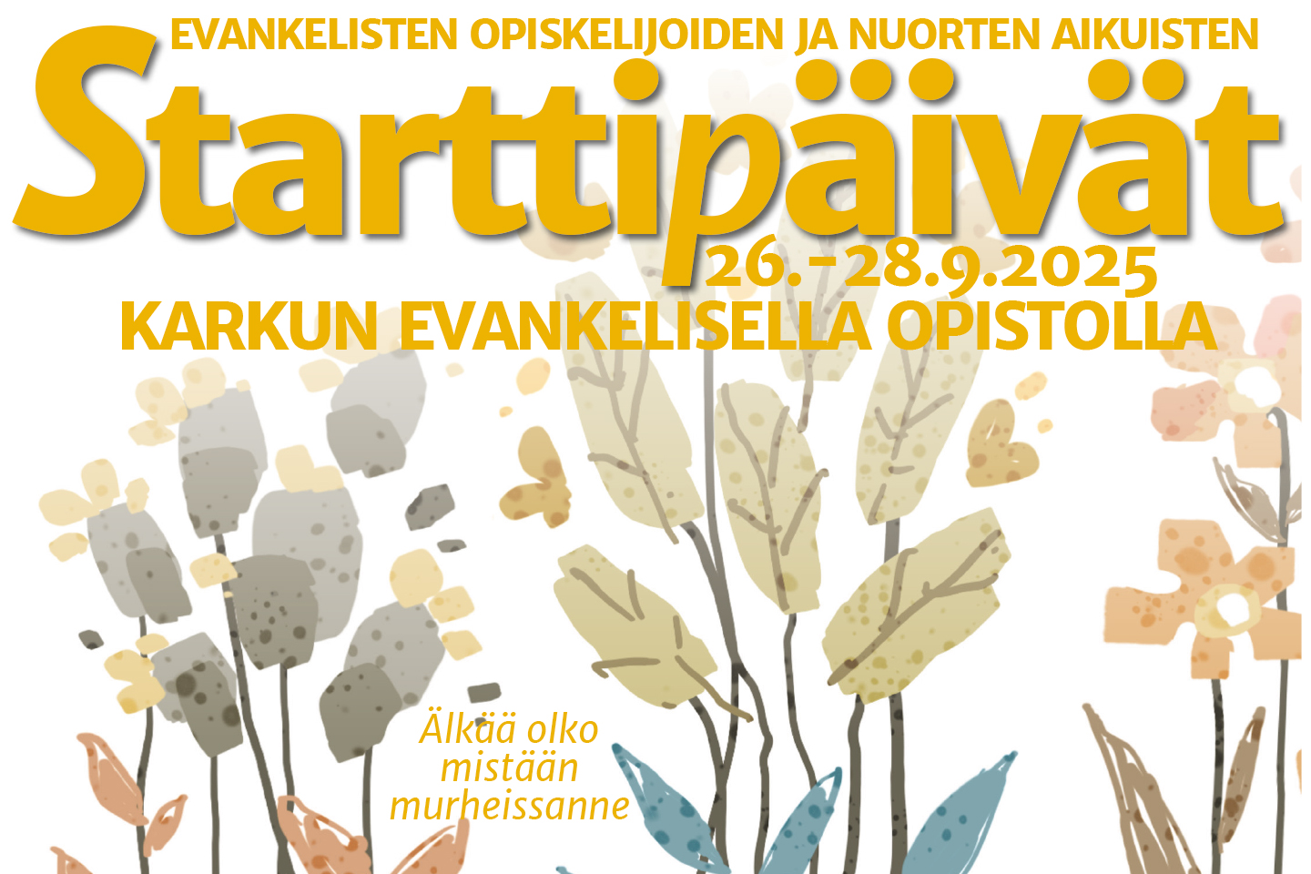 Evankelisten Opiskelijoiden vuotuinen suurleiri Karkun evankelisella opistolla Sastamalassa tulee 26.-28.9.2025 teemalla ”Älkää olko mistään murheissanne”!